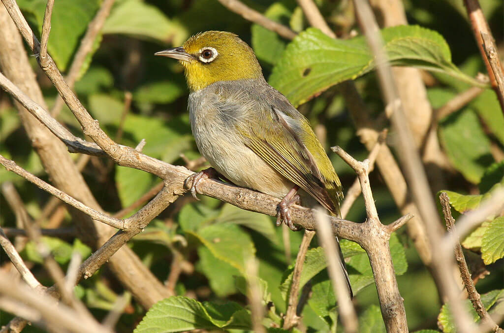 The Silvereyes usually seen on the east coast during spring and summer have yellow throats, pale buff flanks (side of the belly) and white on the undertail. Silvereyes visiting from Tasmania have grey throats, chestnut flanks and yellow on the undertail. Can you spot this difference?